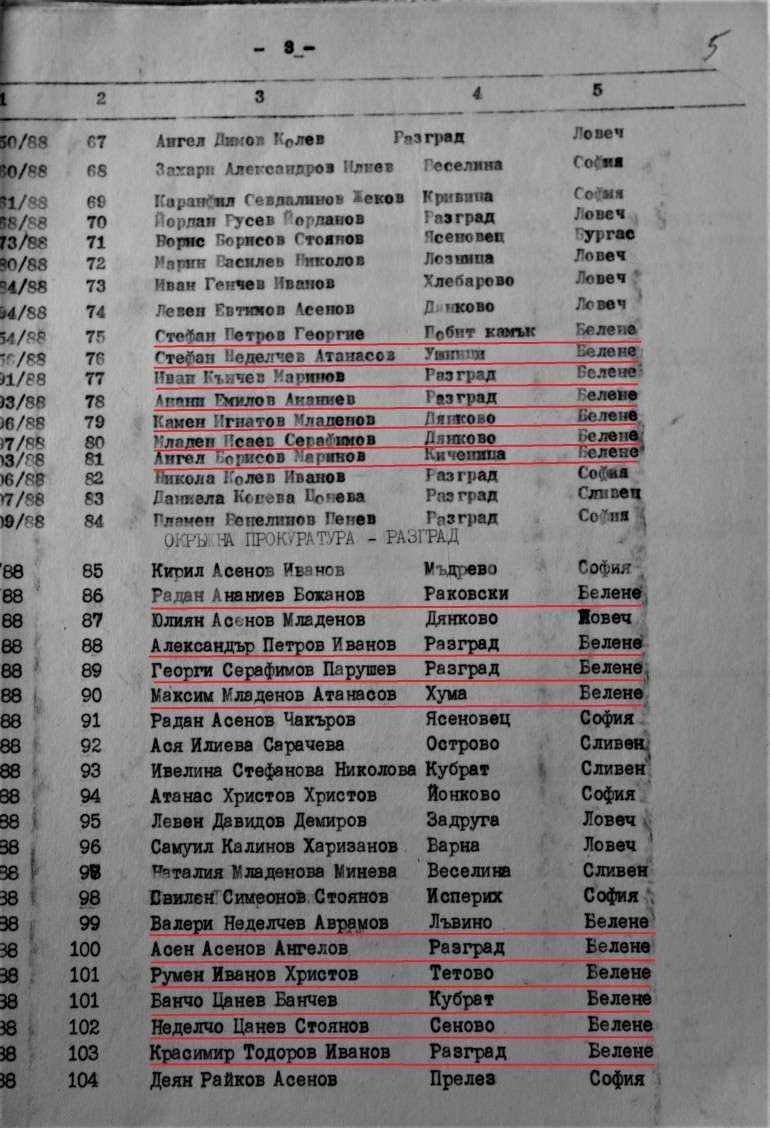 А сега ще видите възможно най-разобличаващи документи за това дали Атанасов е бил свързан с "Възродителния процес". Четете Справка на Районна прокуратура-Разград със списъци на затворници, намиращи се в различни затвори, за изтърпяване на присъди към 25 януари 1989 г. Забележете къде са били основно изпращани - в Белене. Вижте и имената - мнозинството са български турци, със сменени имена. След тези документи Атанас Атанасов трябва да напусне доброволно политиката - това е такъв чутовен скандал, който никога няма да затихне повече!