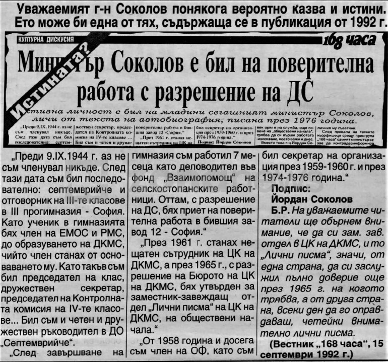 Търкулнала се тенджерата и си намерила похлупака - такава е работата на тези двамата, Соколов и Атанасов. След само шест години, през 1997 г., и Соколов, и Атанасов ще се издигнат още повече - Йордан Соколов ще стане председател на НС, а Атанасов - директор на Национална служба "Сигурност". Техен колега ще бъде министърът на правосъдието Васил Гоцев - любимец на Ярослав Радев и Държавния съвет на НРБ, близък съветник на тоталитарния вътрешен министър Георги Танев. /tribune.bg