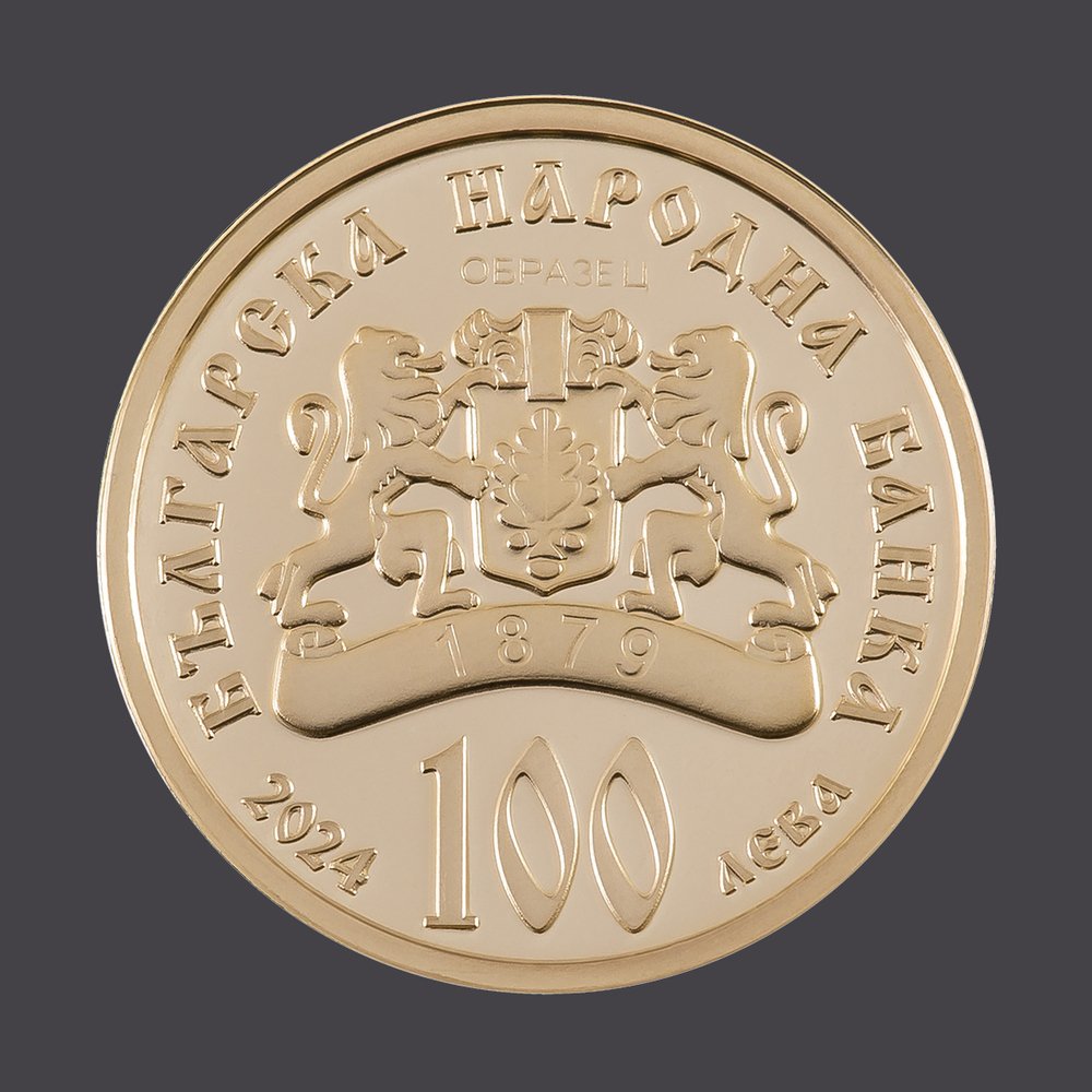 На лицето на монетата в центъра са изобразени емблемата на БНБ с годината "1879" върху лентата, а околовръст надпис "Българска Народна банка", номиналната стойност "100 лева" и годината на емисията "2024".