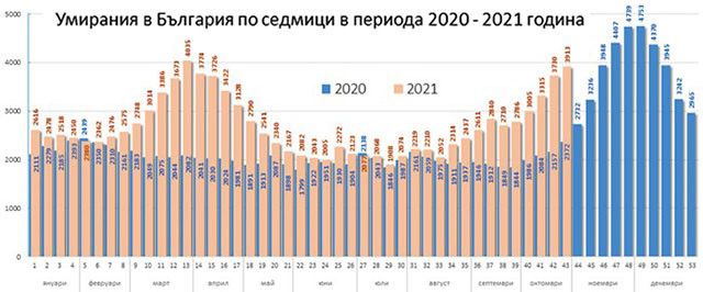 В началото на тази година “скритата” смъртност изчезна, но през март и април 2021 г. по време на втората голяма вълна на епидемията отново се появи и е около 6000 души.