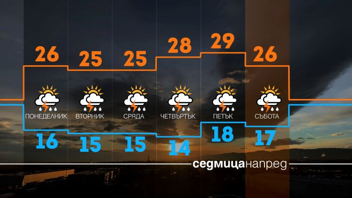 В средата на седмицата времето ще се успокои с валежи предимно в планините и по-малко около тях. Температурите бързо ще догонят нивата отпреди захлаждането с дневни стойности 25-30 градуса.