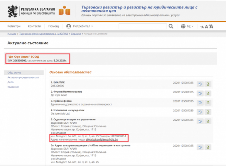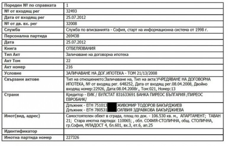 Остава загатка дали същият Живомир Бакърджиев е съпругът на кандидат-министърката от партията на Слави Трифонов. Интересен факт е също, че след справка в Търговския и Имотния регистър става видно, че Живомир Бакърджиев и Силвия Бакърджиева са имали договорна ипотека за жилище с адрес, който съвпада с адреса на седалището на фирма Де Юре Авис ЕООД, която е прехвърлена от г-жа Бакърджиева на 27.07.2021 година. /tribune.bg