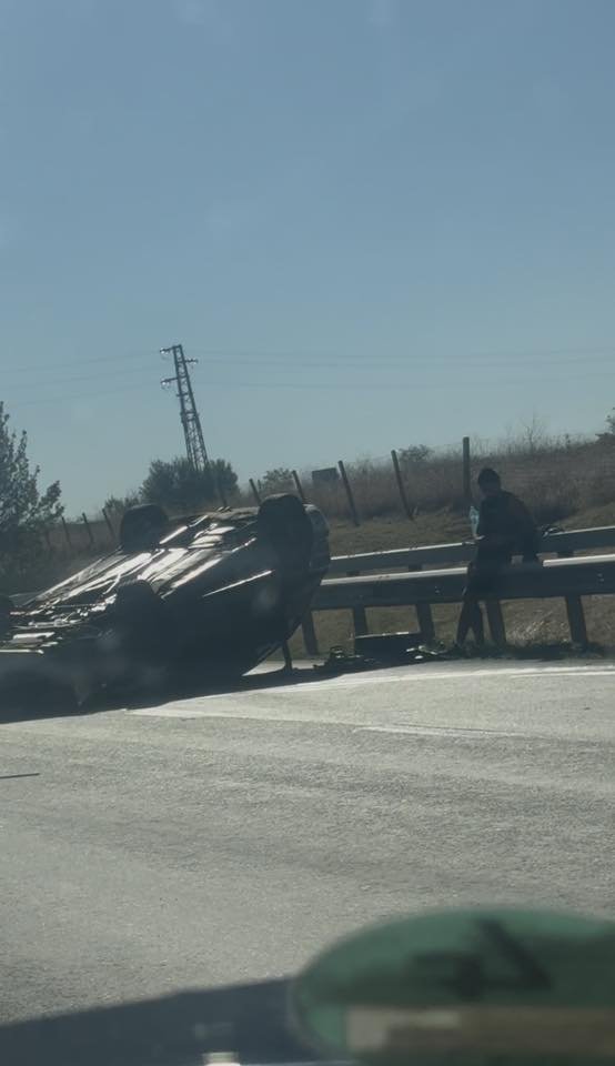 При едната катастрофа кола се е обърнала по таван, показва снимка, публикувана във фейсбук.
