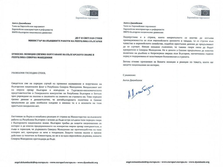 Това провокира и Джамбазки да напише официално писмо до служебния министър на външните работи Светлан Стоев. В него той настоява за бърза и незабавна реакция от институцията с искане да бъде остро осъдена поредната гавра с българския национален символ.