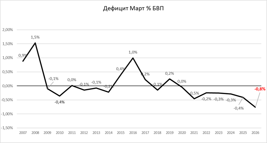 Дефицит за м. март като процент от БВП