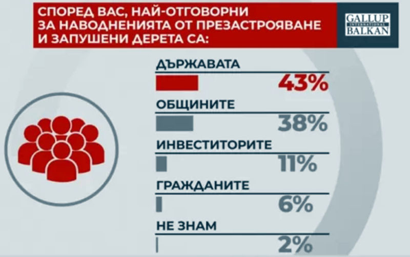 Като основна причина за наводненията 44% посочват застрояването на дерета и реки. Според 29 на сто за бедствието са допринесли непочистените речни корита. Изсичането на гори е посочено от 22% от анкетираните.