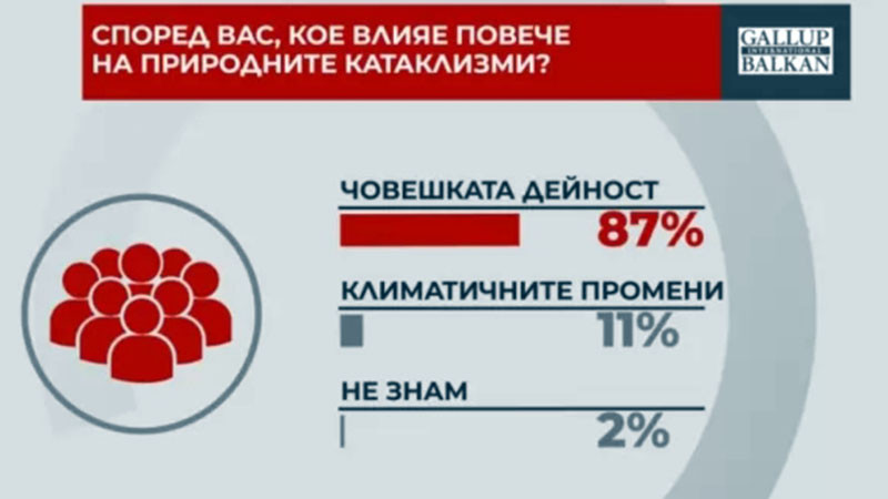 На въпрос кое влияе на природните катаклизми 87% посочват човешката дейност, 11 на сто - климатичните промени.
