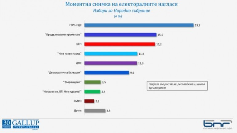 „Галъп”: ГЕРБ на първо място с 23,5%, битката за второто място между ПП и БСП