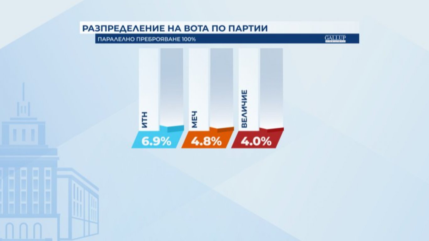 Според данните на "Галъп" "Величие" влиза в следващия парламент с 4,0%.