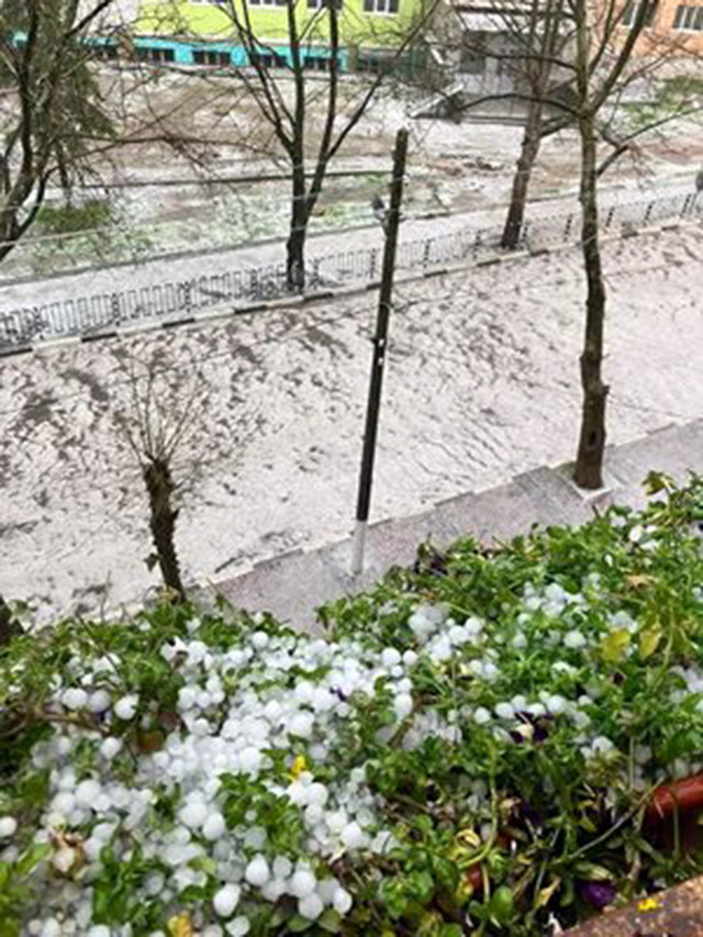 На кадри от село Главиница, обл. Силистра се вижда как 15-минутната ледена стихия е направила бяла покривка в дворовете на хората. Утре отново ще има интензивни локални валежи с условия за бурна гръмотевична активност с градушки, предимно в източната половина на страната, предаде NOVA.