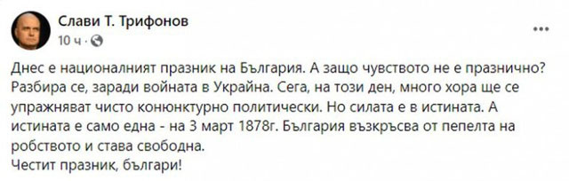 Той не сметна за редно да напише едно „Честит празник“ по повод националния ни празник.