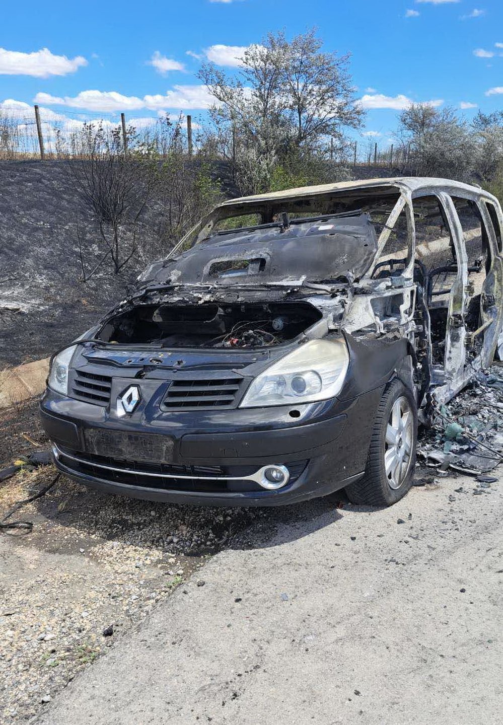 Първоначално лек автомобил "Рено Еспейс" се е запалил на платното в посока София. Пламъците обхванаха и част от сухите треви до предпазната мантинела.