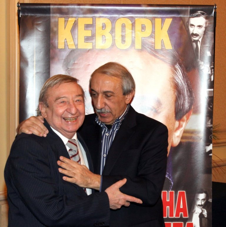 Кеворк Кеворкян (вдясно) и актьорът Никола Анастасов на премиерата на новата книга на Кеворкян - "Тайните на телевизията" на 16 декември 2009 г. в столичния хотел "Шератон". Снимка: Георги Георгиев/Архив на БТА
