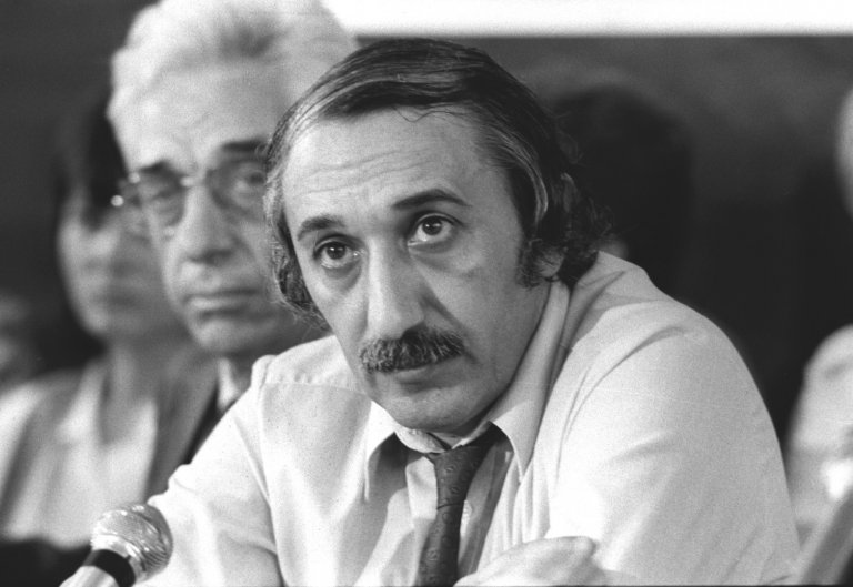 2 юли 1990 г., София. Кеворк Кеворкян на пресконференция в 272-ра аудитория на софийския университет във връзка със студентската стачка. Снимка: Живко Ангелов/Архив на БТА