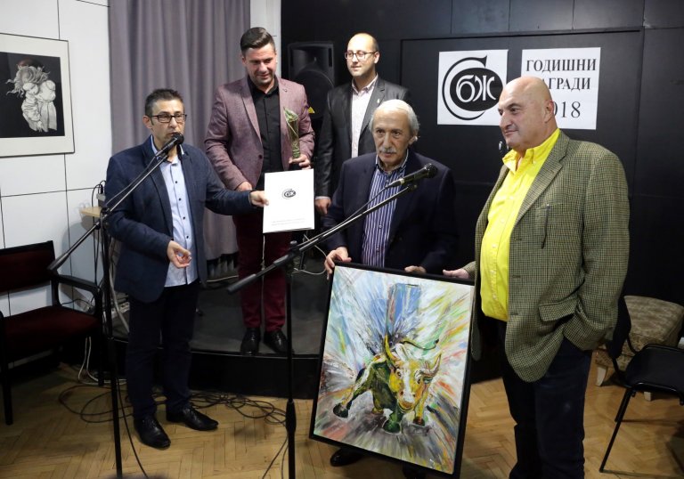9 ноември 2018 г., София. Кеворк Кеворкян с наградата "Йосиф Хербст" за цялостен принос в българската журналистика на Годишните награди на СБЖ за творчески постижения. Снимка: Минко Чернев/ Архив на БТА