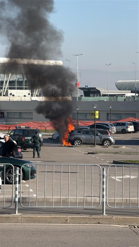 Лек автомобил избухна в пламъци на един от паркингите на летище "Васил Левски" в София. Въпреки намесата на пожарникари колата изгоря.