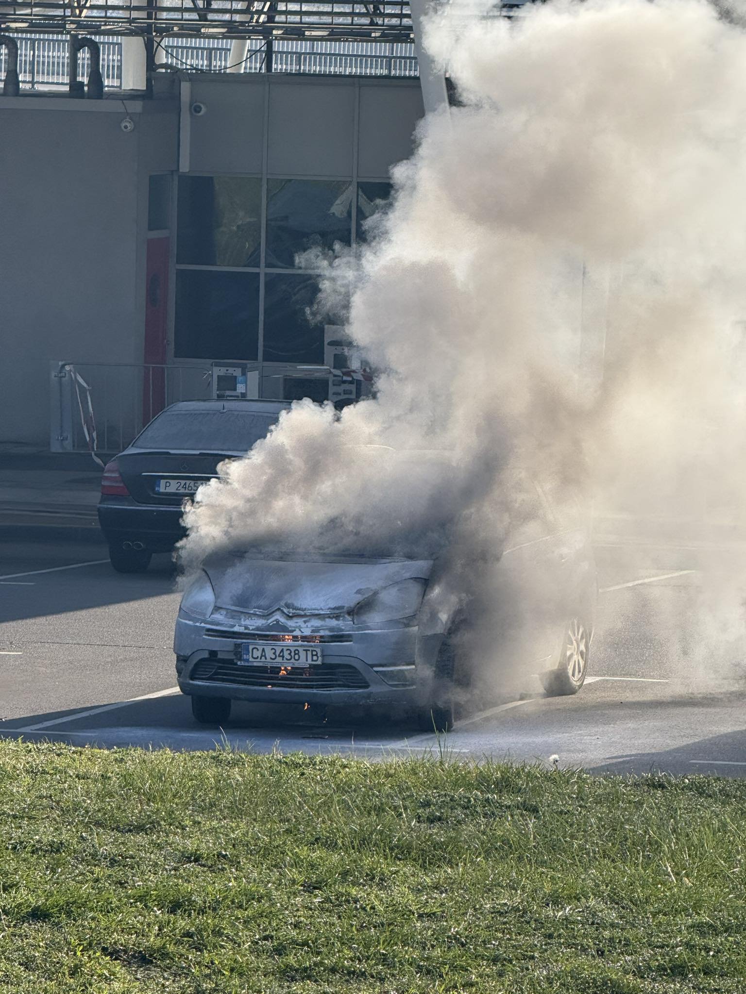 От кардите се вижда, че огънят е обхванал предницата на паркирания "Ситроен" със софийска регистрация. Колата е паркирана на Паркинг 5.