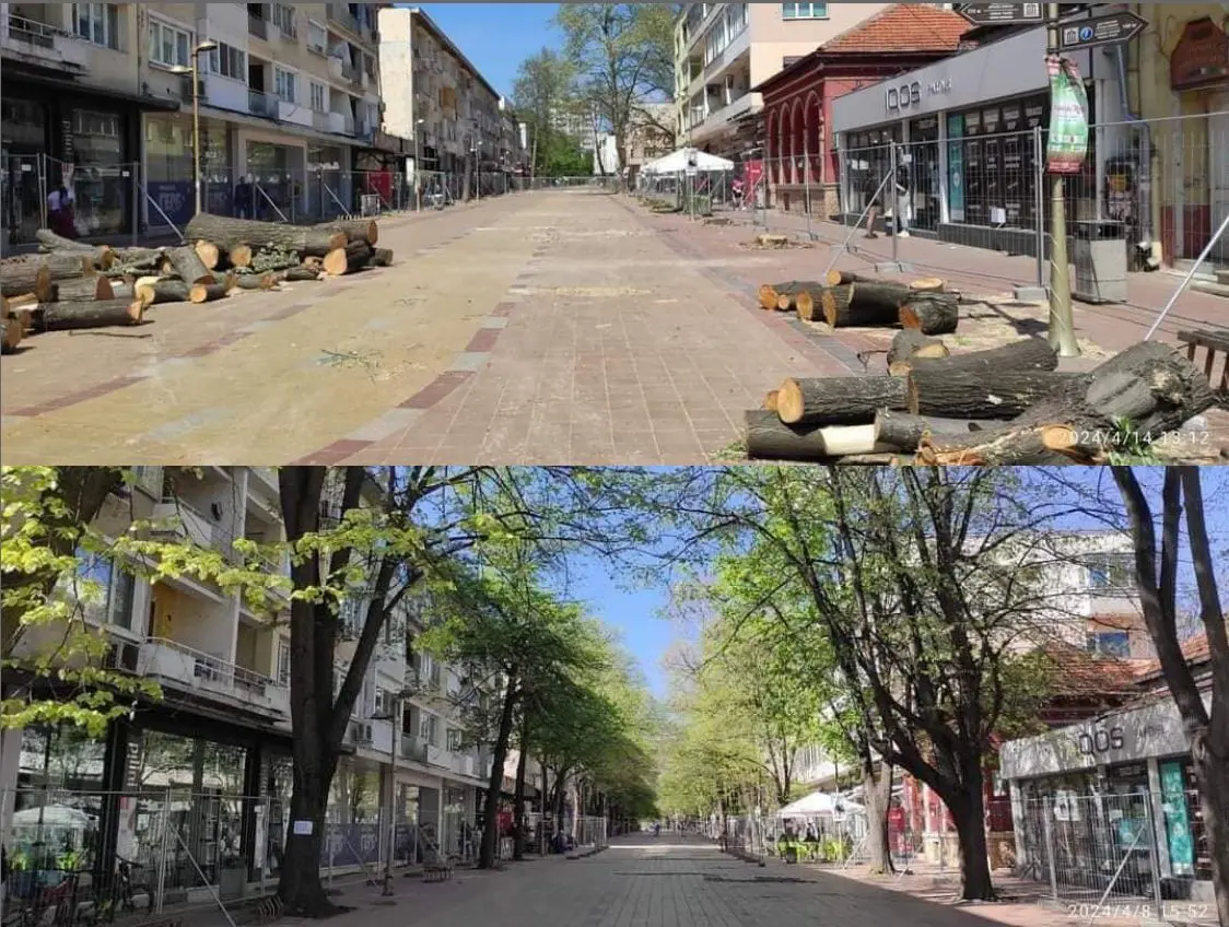 Става въпрос за огромни липи, с които хората са свикнали през годините. Това предизвика вълна от възмущение сред част от гражданите, а някои коментираха, че сега центърът на града изглежда по коренно различен начин и не могат да го познаят.