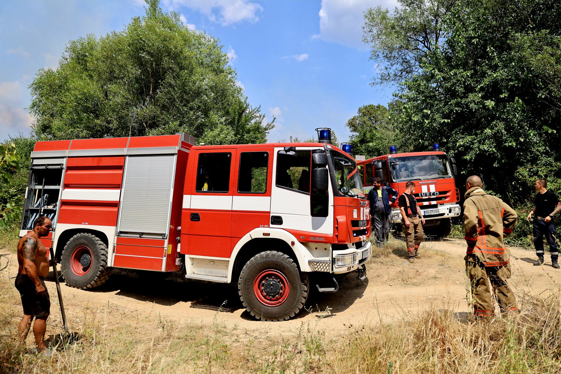 Край калояновското село Отец Паисиево горят сухи треви близо до вилната зона в местността "Юртата". Вода се взема от близкия язовир, предава БТА.