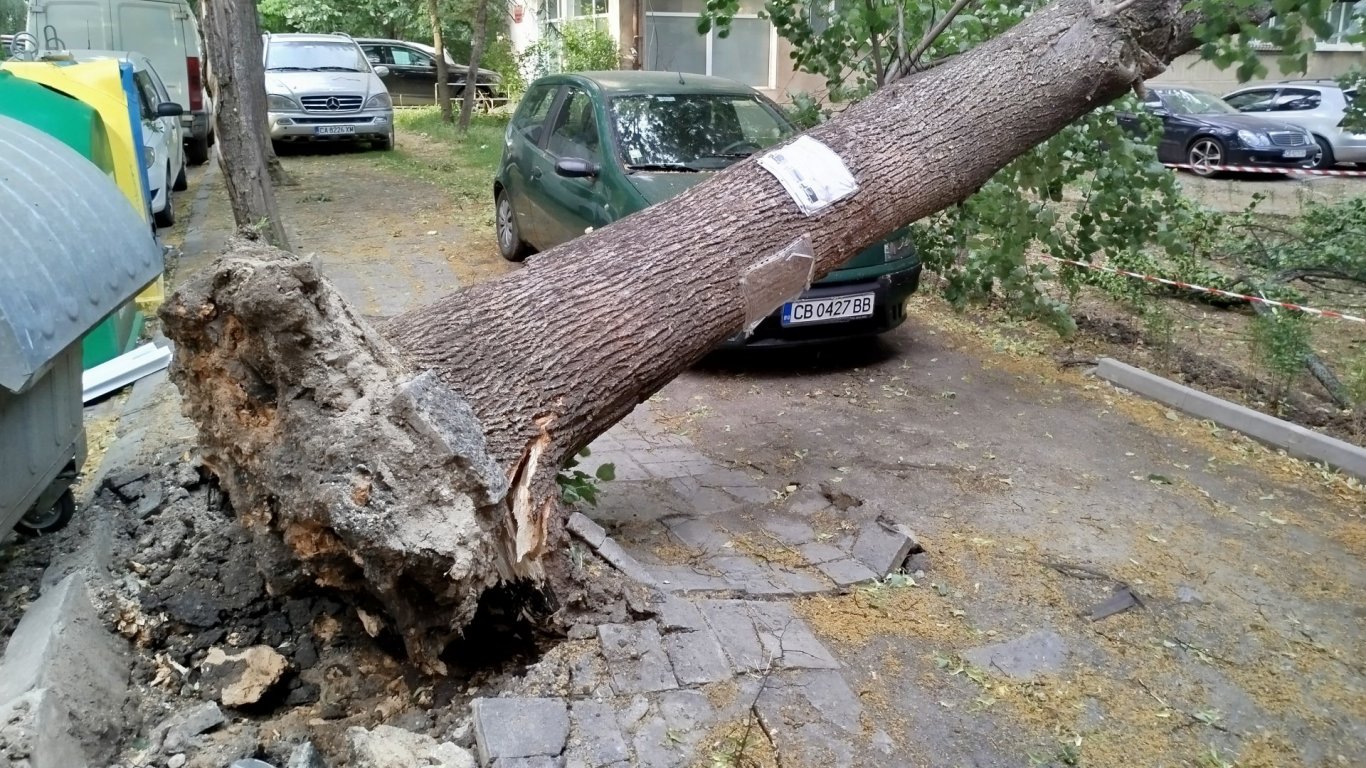 И днес се събудихме с градушка на места. В части на София имаше ледени късове, но сравнително малки. Бурен вятър в София събори голяма липа в жк. Славия.