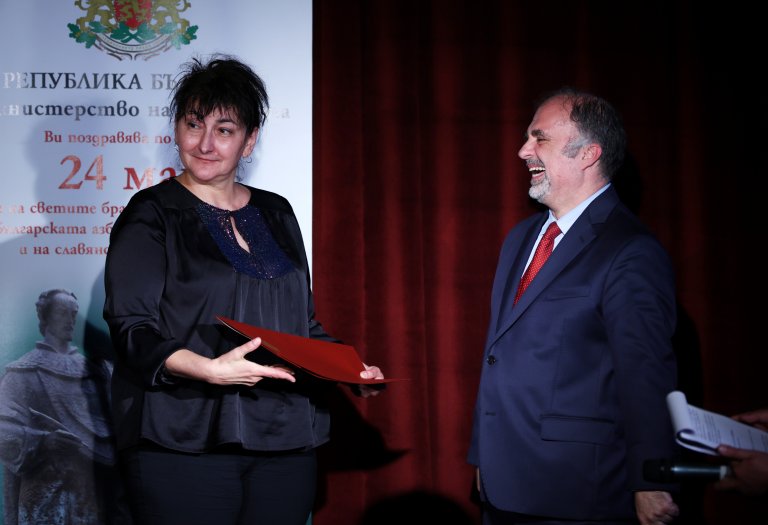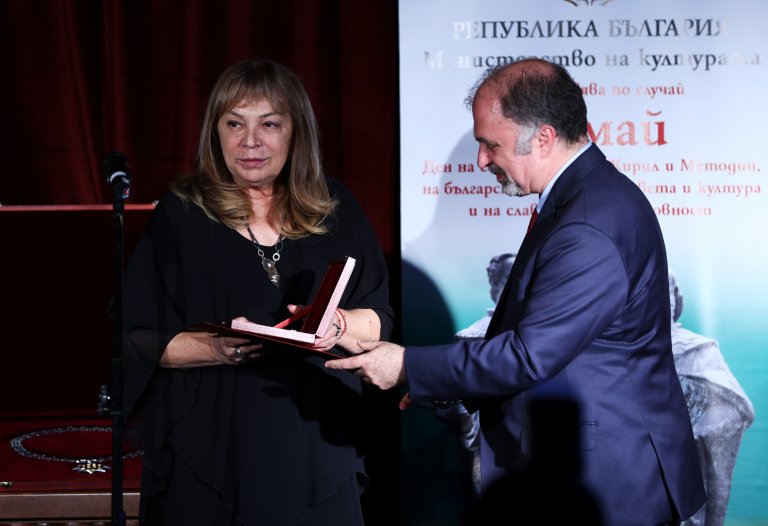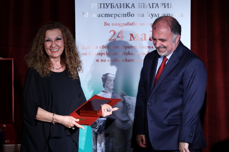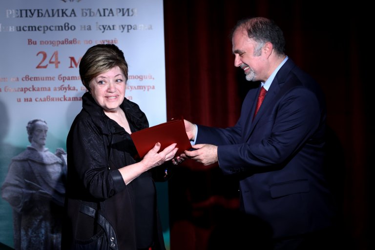 Министърът на културата Найден Тодоров отличи на официална церемония артисти и дейци от различни области на културата за техния принос за развитието на българската духовност и в навечерието на 24 май, Деня на светите братя Кирил и Методий, на българската азбука, просвета и култура и на славянската книжовност.