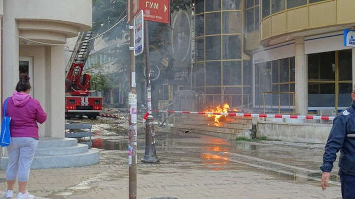 Пожар гори в центъра на Благоевград (СНИМКИ)