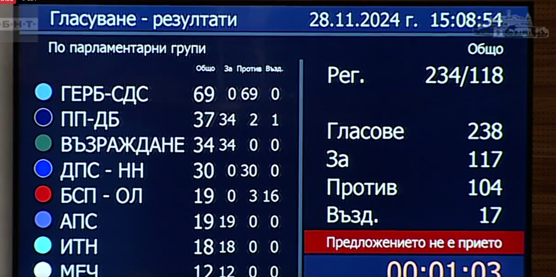 Ето как изглежда последното гласуване за избор на председател, което остави Силви Кирилов на косъм от това да бъде избран за председател.