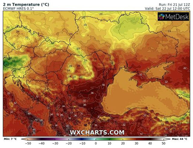 Последната пълна седмица на юли ще настъпи с поредната топла вълна от Северна Африка. Кулминацията ще е в средата на периода с дневни температури до 42-43 градуса. Локално са възможни и по-високи стойности.