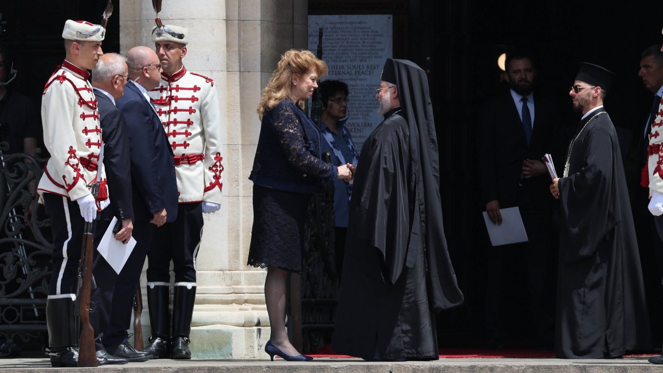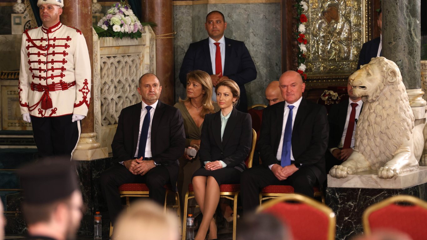 На видно място в храма бяха един до друг тримата първи държавници по сан - председателят на Народното събрание Рая Назарян, президентът Румен Радев и служебният премиер Димитър Главчев.
