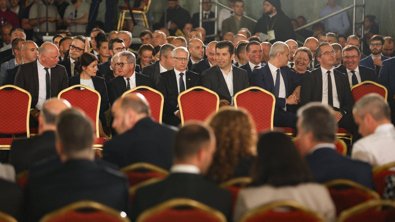 На церемонията присъстват лидерът на ПП Кирил Петков, бившият премиер Николай Денков и кметът на София Васил Терзиев. Тук е и председателят на "Възраждане" Костадин Костадинов.
