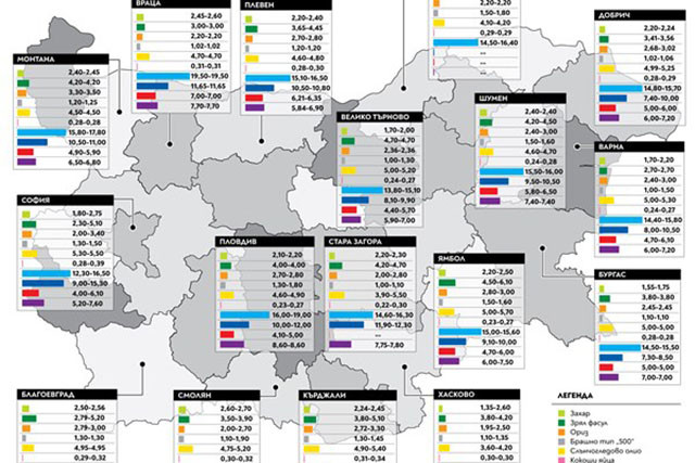 Този натиск върху пазара обаче не влияе по никакъв начин върху цените на основните храни в България. Млечните продукти например поскъпнаха за пореден път миналата седмица и сиренето и кашкавалът, които по магазините гонят съответно 16 и 25 лв. за килограм, добавиха нови 2-5% върху цените си на едро по тържищата.