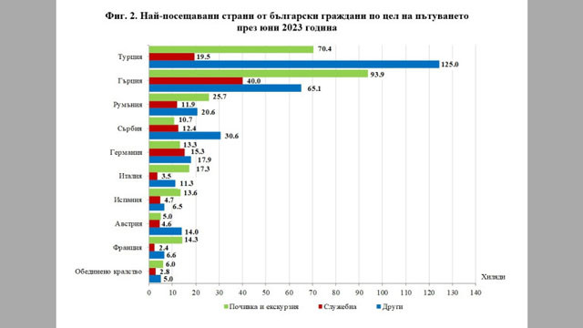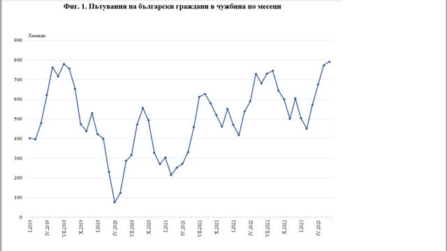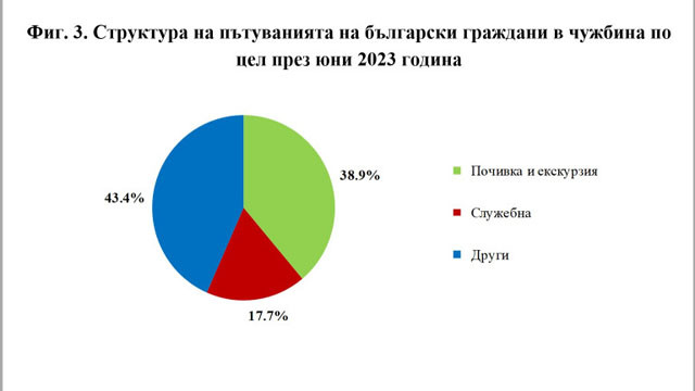 Според данни на НСИ пътуванията на български граждани в чужбина през юни 2023 година са достигнали 790 300, което е с 16.1% повече в сравнение със същия месец миналата година. Увеличение е регистрирано по всички наблюдавани цели.