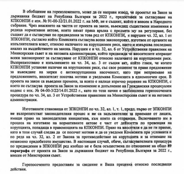 Една от промените вече е била посочена от КПКОНПИ като корупционен риск