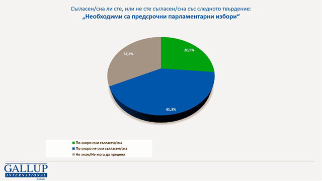 Стабилно намаляват нежелаещите предсрочни избори, сочи проучване на "Галъп"