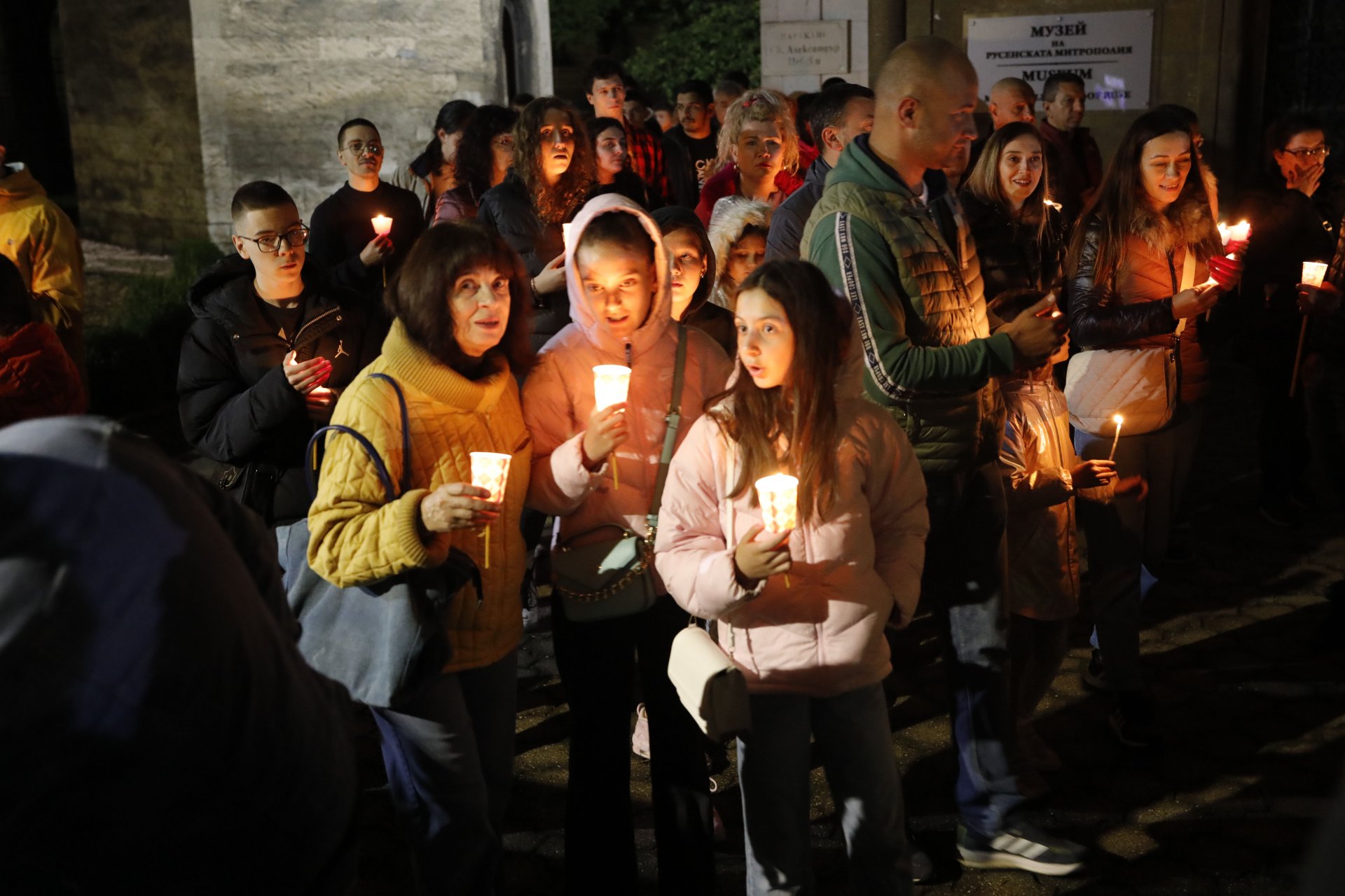 Стотици вярващи посрещнаха Христовото Възкресение пред катедралния храм "Света Троица" и в Русе, добавя БТА.