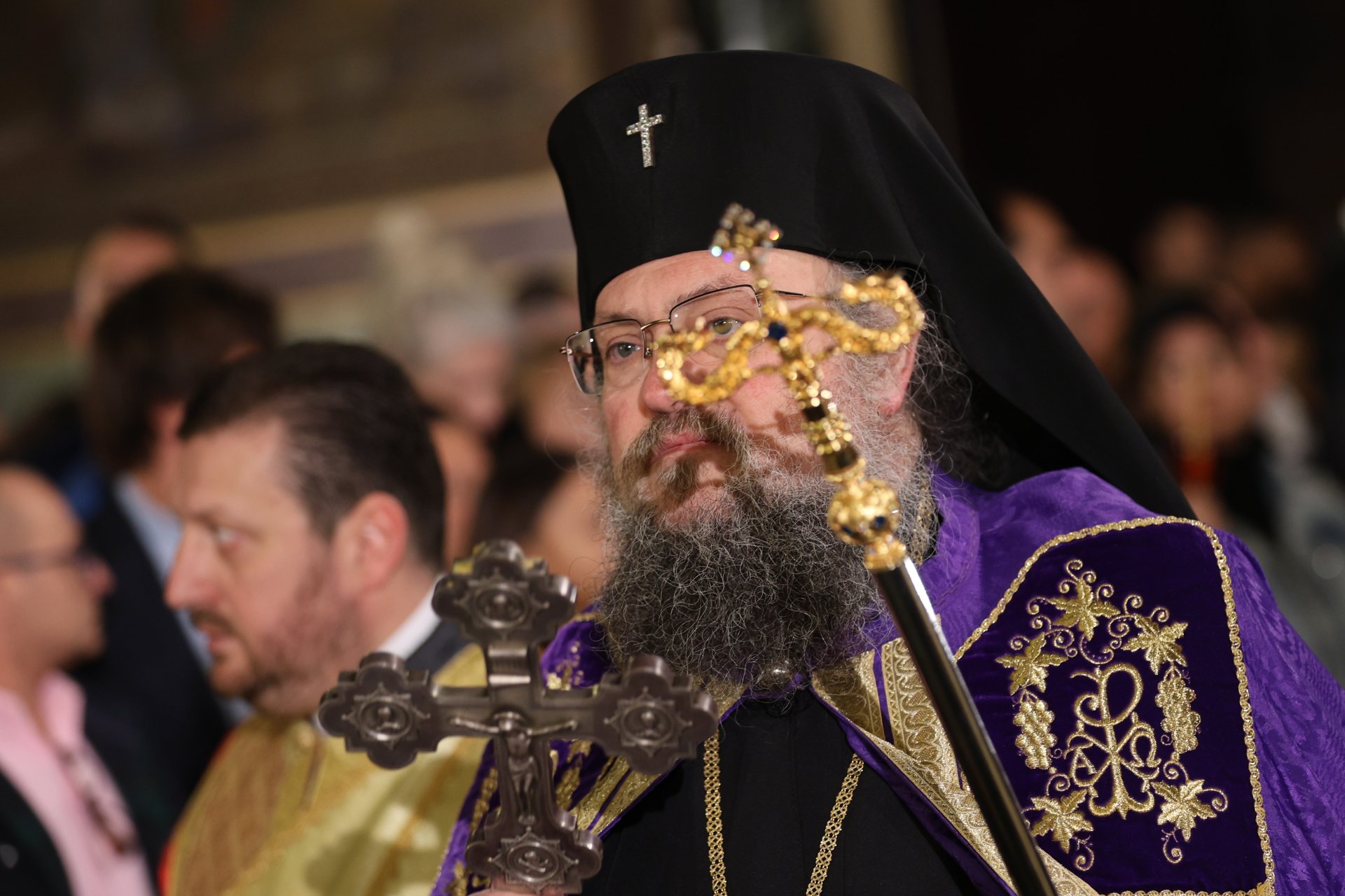 "Благодатта на Възкръсналия Господ и Спасител Иисус Христос и Неговата велика милост да бъдат с всички верни в Родината и извън нейните предели! За много и благословени години!", отправи своя благослов наместник-председателят на Светия синод.