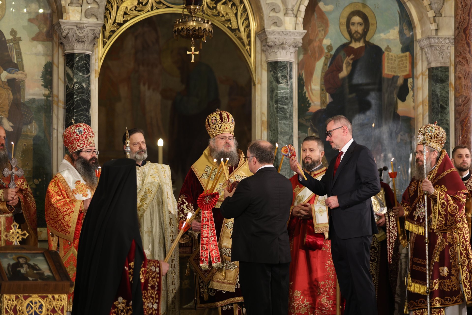 Пред патриаршеската катедрала "Св. Александър Невски" наместник-председателят на Светия синод - Врачанският митрополит Григорий, възвести Христовото Възкресение и отправи благослов към българския народ