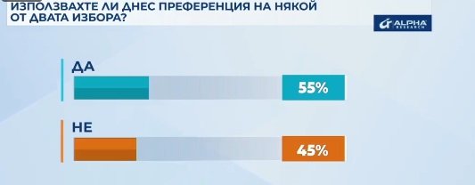 Според данните 55% от гласоподавателите са използвали преференциалния вот за своя предпочитан кандидат, а 45 на сто не са отбелязали преференция.