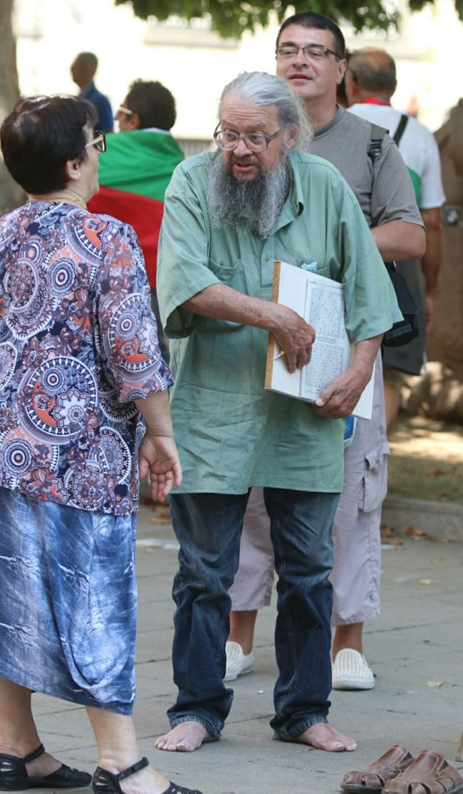Лека-полека след 9 ч започна да се запълва с облечени в неформални ризи и дънки депутати от БСП, скромна група около лидера на “Възраждане” Костадин Костадинов и вечния протестър Йоло Денев. Така около 10 ч празнината се позапълни. Само час по-късно обаче от групата на Христо Иванов вече почти нямаше присъствие, а феновете на “триото” пък започнаха да търсят сенките в жежкия септемврийски ден.