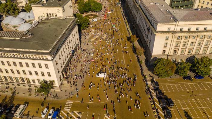 В 10,30 ч фотографът и тв продуцент Виктор Димчев преброи 1180 протестиращи по снимка от дрон. От началото на протестите преди повече от два месеца Димчев засича броя на хората на площада и оспорва твърденията на “триото” за масовост на протестите.