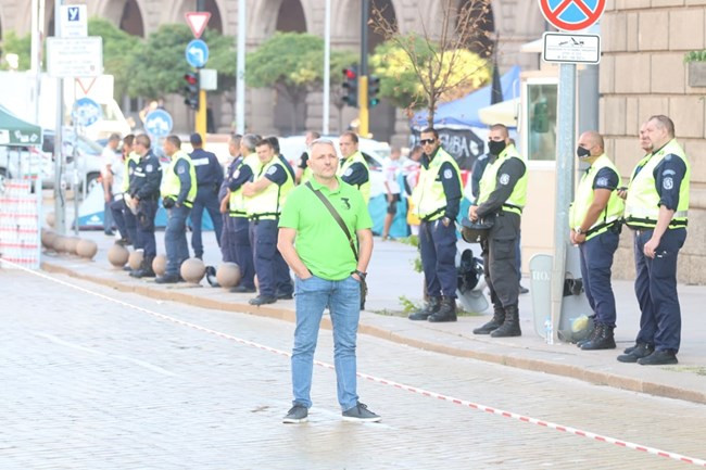 Първата част от опита за римейк на 2 септември приключи по обяд. Водени от Дионисий протестиращите опънаха 50-метрово българско знаме пред МС и полека се разотидоха в обедна почивка. Със закани да се върна за вечерна серия на протеста. Останаха само яки татуирани момчета, които наобикаляха полицейските КПП-та и внимателно проследяваха кого и как проверяват униформените на влизане към площада и кого не закачат. Водеха си и записки на смартфоните./24 часа