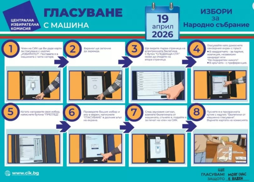 Централната избирателна комисия (ЦИК) публикува във фейсбук разяснителни стъпки за гласуването с машина и хартиена бюлетина на предстоящите избори на 19 април.