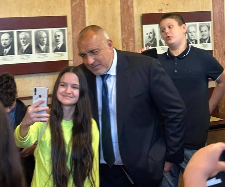 Ученици от Велико Търново се снимаха в кулоарите на Народното събрание с лидера на ГЕРБ Бойко Борисов.