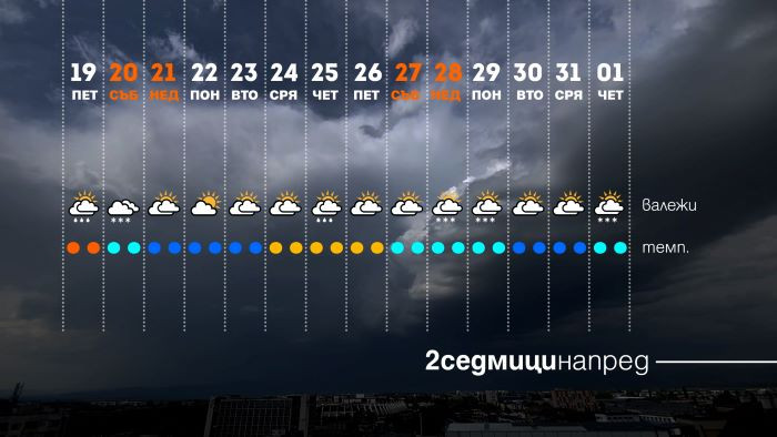 Следобед и привечер вятърът ще се обърне и ще задуха със студени пориви от северозапад. До полунощ локално из Дунавската равнина ще има кратки валежи от дъжд, дори с възможна гръмотевична активност.