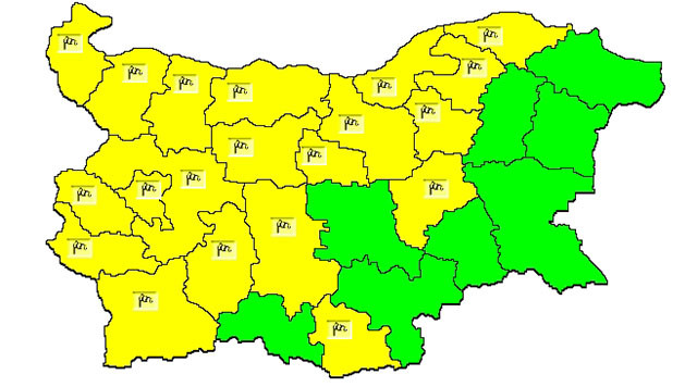 Жълт код за силен вятър в 21 области у нас в четвъртък, съобщиха от Националният институт по метеорология и хидрология (НИМХ).
