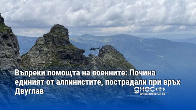 Военновъздушните сили и планински спасители обединиха сили в операция по евакуирането на пострадал алпинист в района на връх Двуглав в Рила.