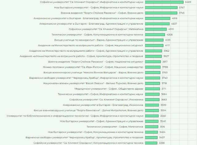 6469 лева - толкова е средният месечен облагаем доход на завършилите "Информатика и компютърни науки" в Софийския университет "Св. Климент Охридски".