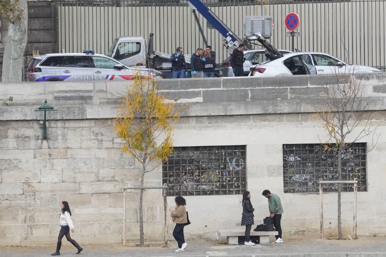 19 октомври 2025 г. Полицията евакуира посетителите, затвори музея и околните улици, а идващите нови посетители бяха връща. Снимка: AP/БТА