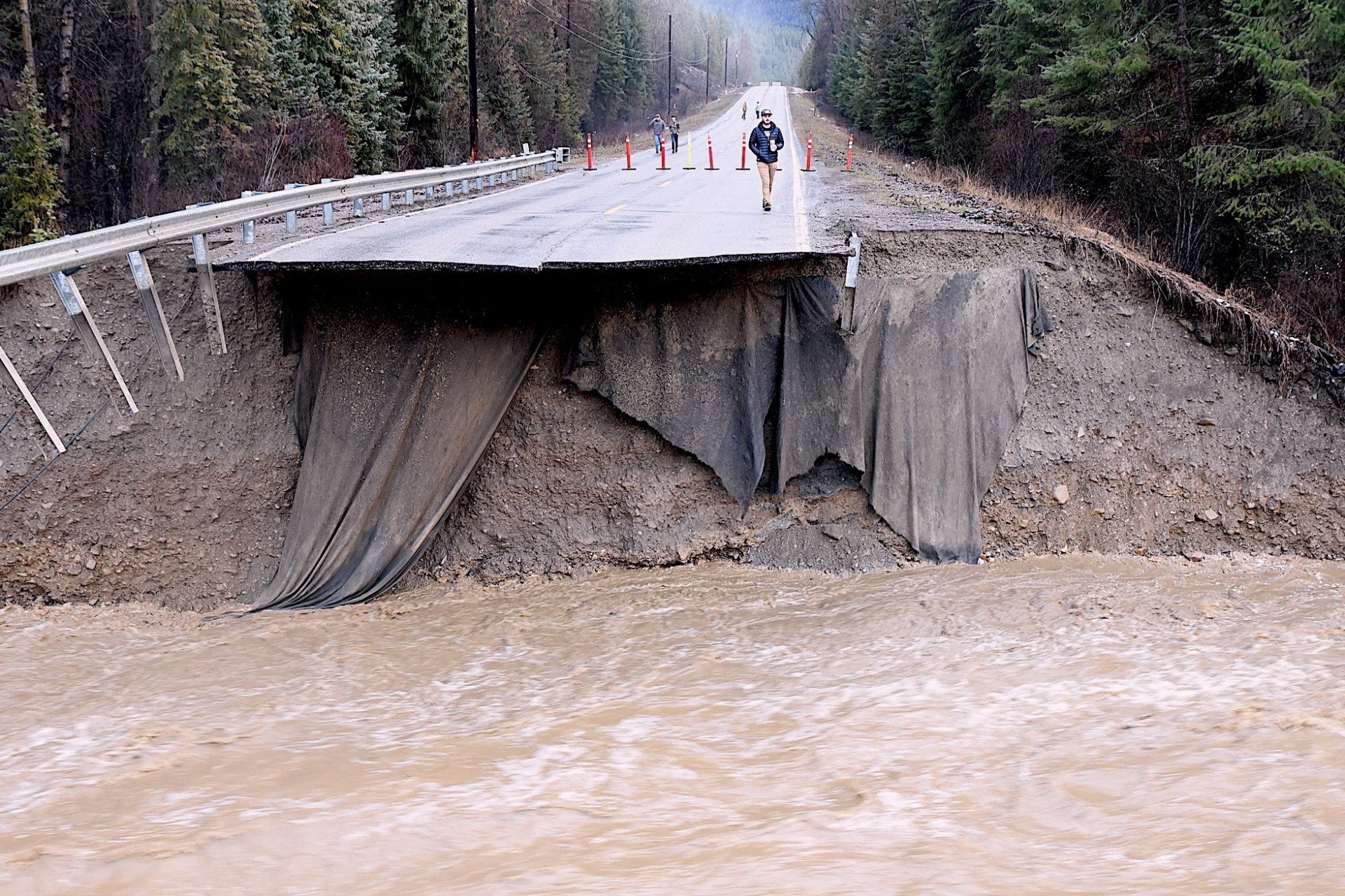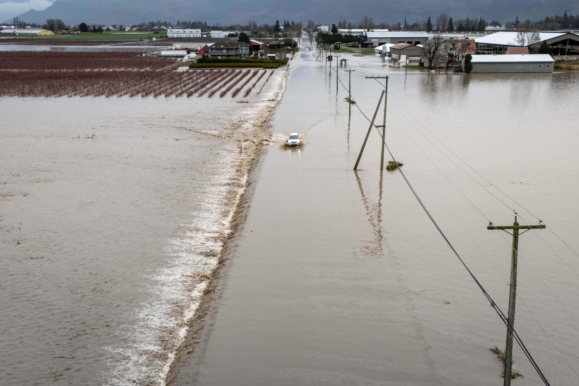 Кадри от град Аботсфорд в Британска Колумбия - на границата между САЩ и Канада, показват коли под вода и улици, превърнали се в реки. Спасителни екипи обикалят с лодки наводнените райони.