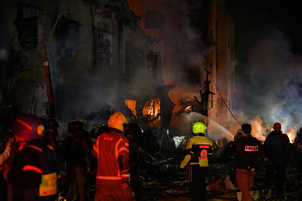 Снимки и видеа в социалните мрежи показват пожари поне на четири места в израелската столица. От израелската армия призоваха гражданите да останат в укритията.